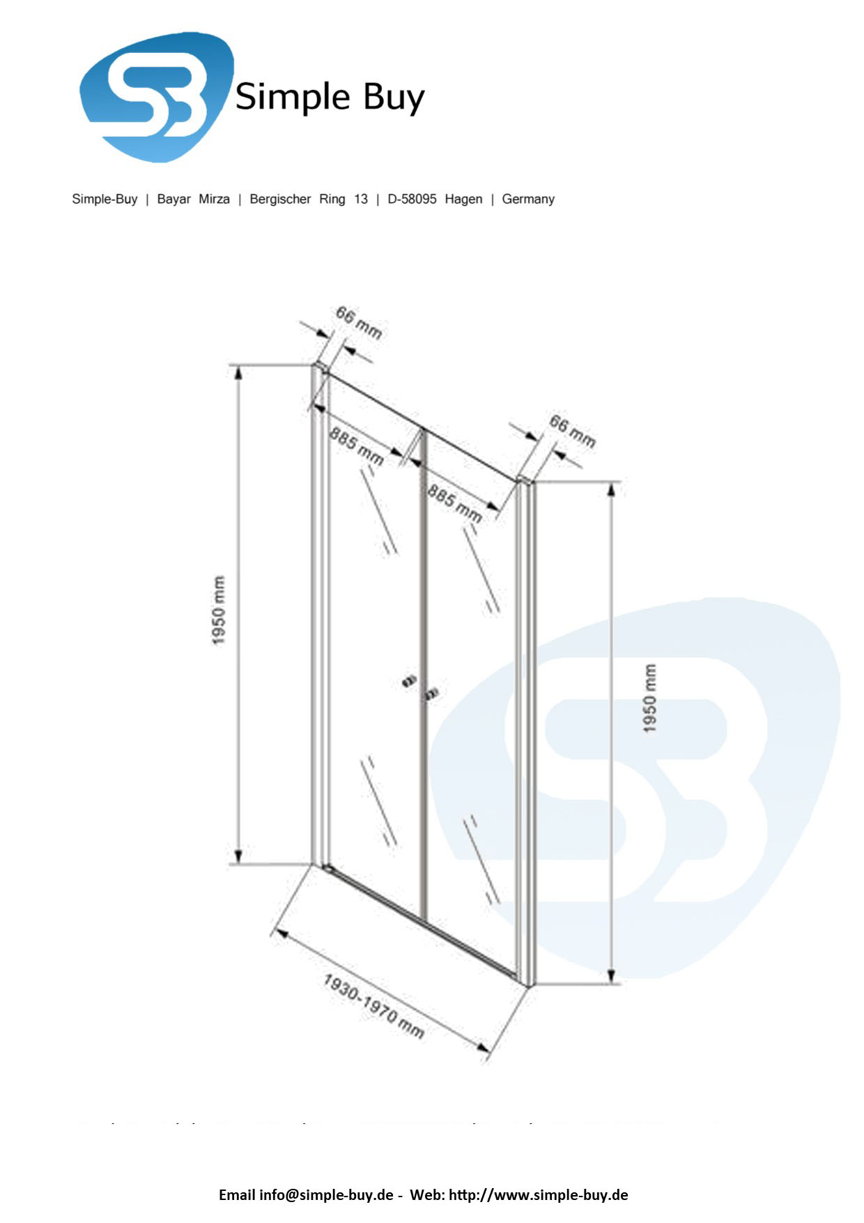 Glasstärke: 8 mm ESG-Sicherheitsglas (Einscheibensicherheitsglas nach DIN-EN12150) mit Beschichtung Glashöhe: 195 cm